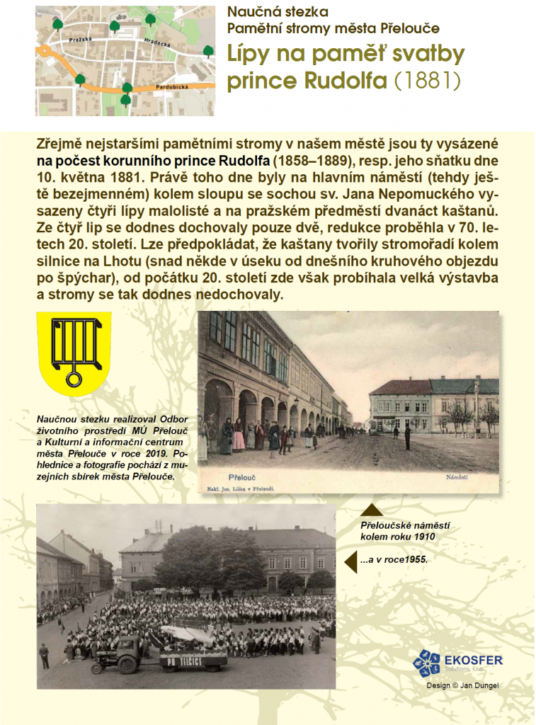 Dovolujeme si Vás informovat o realizaci naučné stezky Přeloučské pamětní stromy. Naučnou stezku realizoval Odbor životního prostředí MÚ Přelouč a Kulturní a informační centrum města Přelouče v roce 2019.