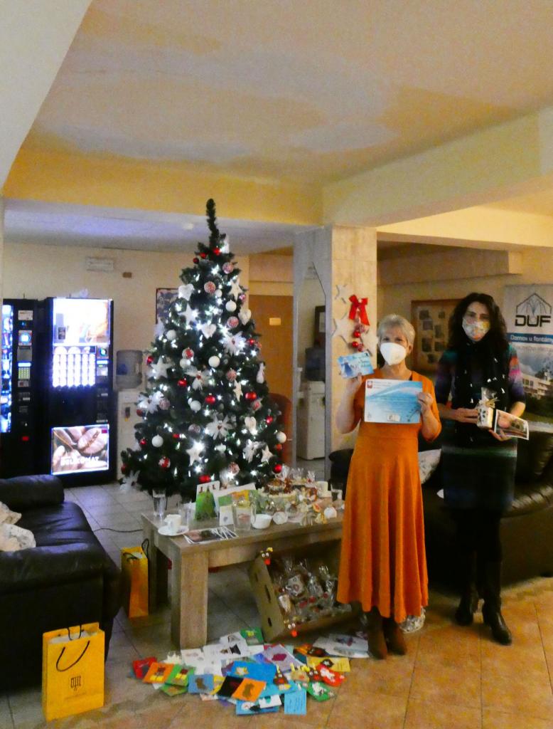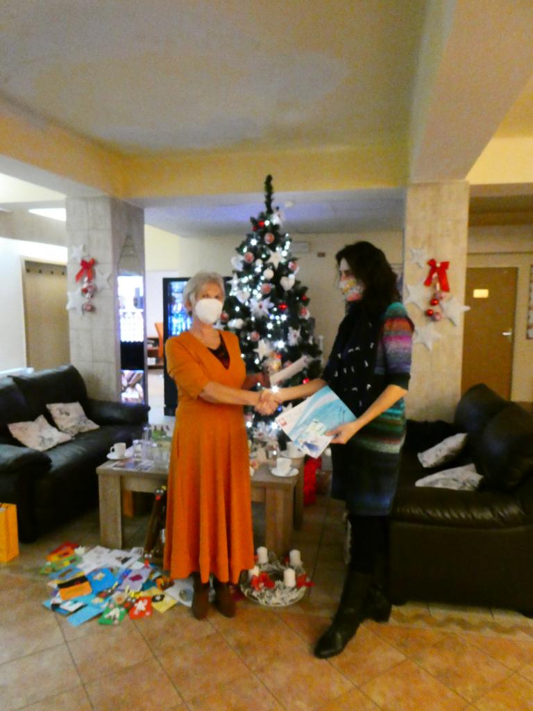 V pondělí 7. 12. 2020 se uskutečnilo v Domově u fontány velmi milé předvánoční setkání. Paní ředitelce přeloučského domova pro seniory Danuši Fomiczewové předaly zástupkyně Dobrocentra Přelouč Zdenka Kumstýřová a Hana Chalupová pro všechny pracovníky originální vánoční přání. Tato přání, symbolizující poděkování za práci a statečnost v této nelehké době v souvislosti s pandemickou situací, vytvořila na základě výzvy Dobrocentra široká veřejnost. Velice originální přání vytvořila například Irena Staňková, která místo přání upekla „vánoční“ dort, na kterém nechyběly symboly Vánoc či fontána, symbol domova. „Poděkování určitě patří také paní Hývlové z knihovny, která předala informaci maminkách ze skupiny STARTBOOK a ty vytvořily asi 50 přáníček a také 10 krásných andílků. Dále se zapojili dobrovolníci z Dobrocentra Přelouč, skauti, výtvarný kroužek ZUŠ Přelouč, žáci ZŠ Masarykovo náměstí a děti v Jakub klubu. Celkem jsme obdrželi 150 přáníček. 5 přáníček předáváme pečovatelkám z Pečovatelské služby města Přelouče“, prozradila Zdena Kumstýřová z Dobrocentra Přelouč. Na oplátku Danuše Fomiczewová předala pro všechny aktivní dobrovolníky, kteří spolupracují a pomáhají v Domově u fontány také vánoční dárečky. „Vážíme si práce dobrovolníků, kteří nám pomáhají s našimi klienty především po stránce duševní rehabilitace či po stránce spirituální, která je určitě velmi důležitá a přínosná“, svěřila se paní ředitelka společně se svými kolegy Zdeňkem Šrekem a Zuzanou Kejdovou. Ve vánočně vyzdobeném Domově u fontány panuje všeobecně dobrá nálada, ačkoliv mnohdy důvodů k radost skutečně moc není. Optimismus a laskavost pracovníků je obdivuhodná a patří jim obrovské poděkování a zároveň i vám všem, kteří jste se připojili k výzvě Dobrocentra a vytvořili pro ně krásná vánoční přání.