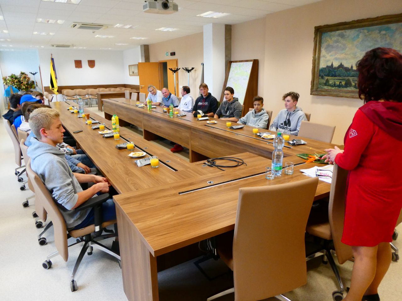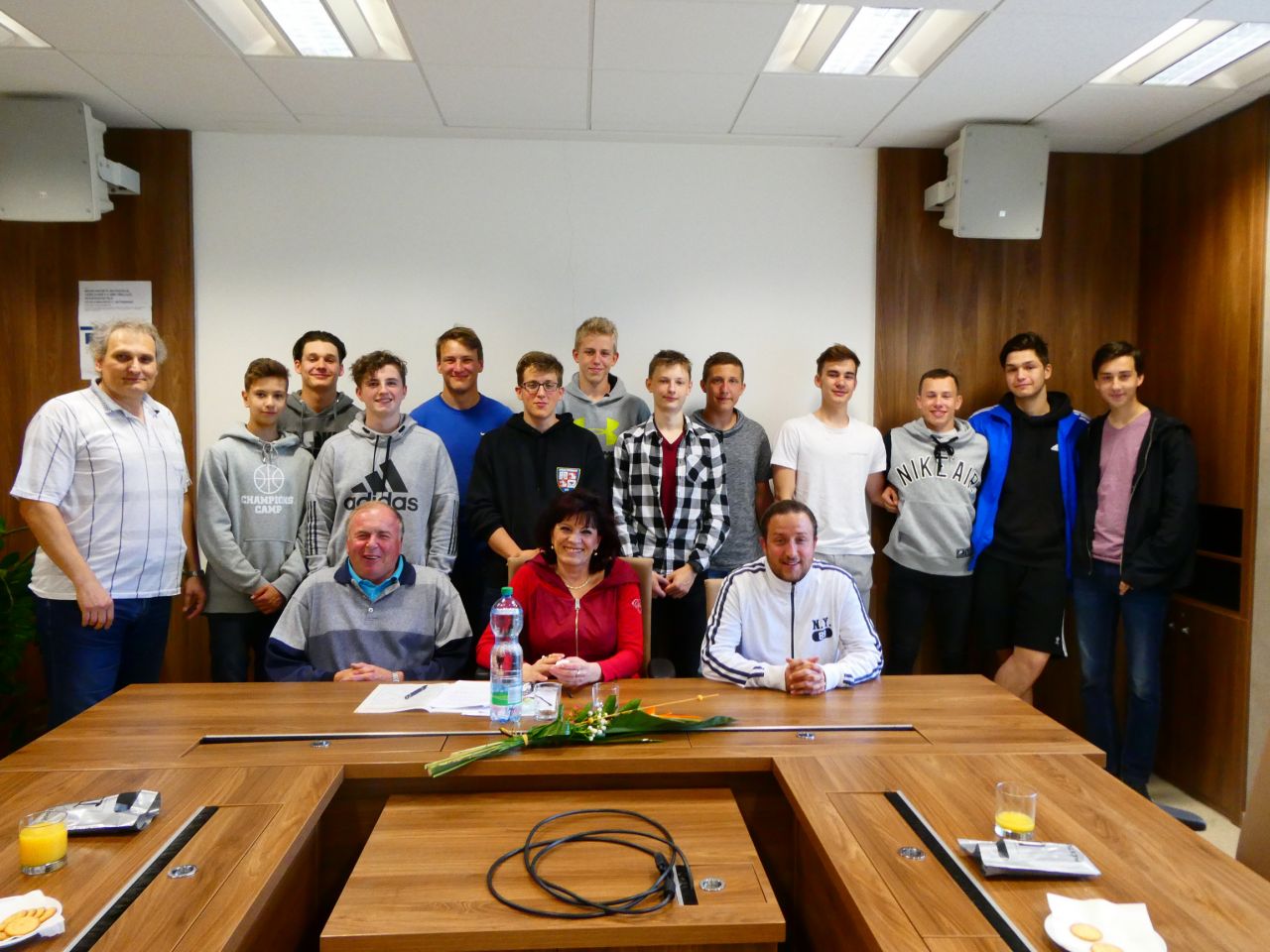 V pondělí 20. května 2019 navečer přivítala starostka města Irena Burešová v zasedací místnosti Městského úřadu 12 přeloučských basketbalistů Kadetů U17 společně s hlavním trenérem Víťou Priessnitzem, dále pak i trenéry Jiřího Priessnitze a Petra Šindeláře. Tomuto basketbalovému týmu se v letošní sezoně skutečně dařilo. Získali titul „MISTR NADREGIONÁLNÍ SOUTĚŽE KADETŮ V KATEGORII U17", historicky poprvé se podařilo těmto sportovcům vyhrát všechny zápasy bez jediné porážky. Setkání probíhalo ve velice veselém duchu, je znát, že v týmu panuje skutečně dobrá nálada. Právem můžeme být na Kadety U17 pyšní. Paní starostka jim pogratulovala, poděkovala zároveň i za výbornou reprezentaci našeho města a popřála další výborné výsledky v nové sezoně a fajn letní prázdniny.