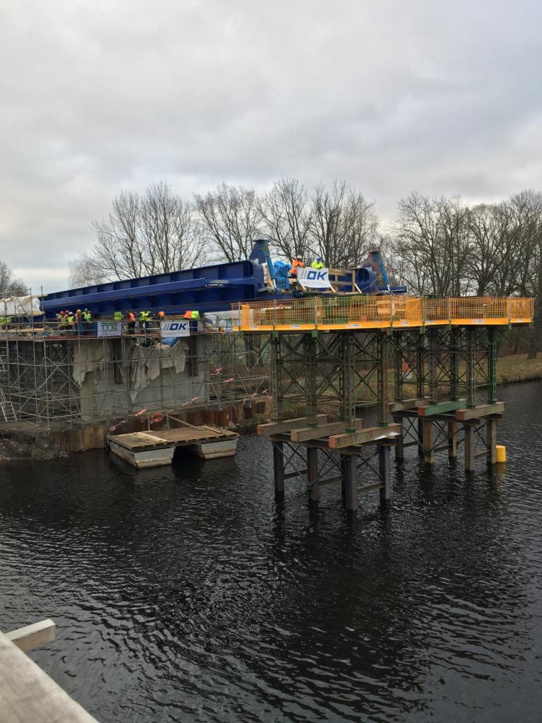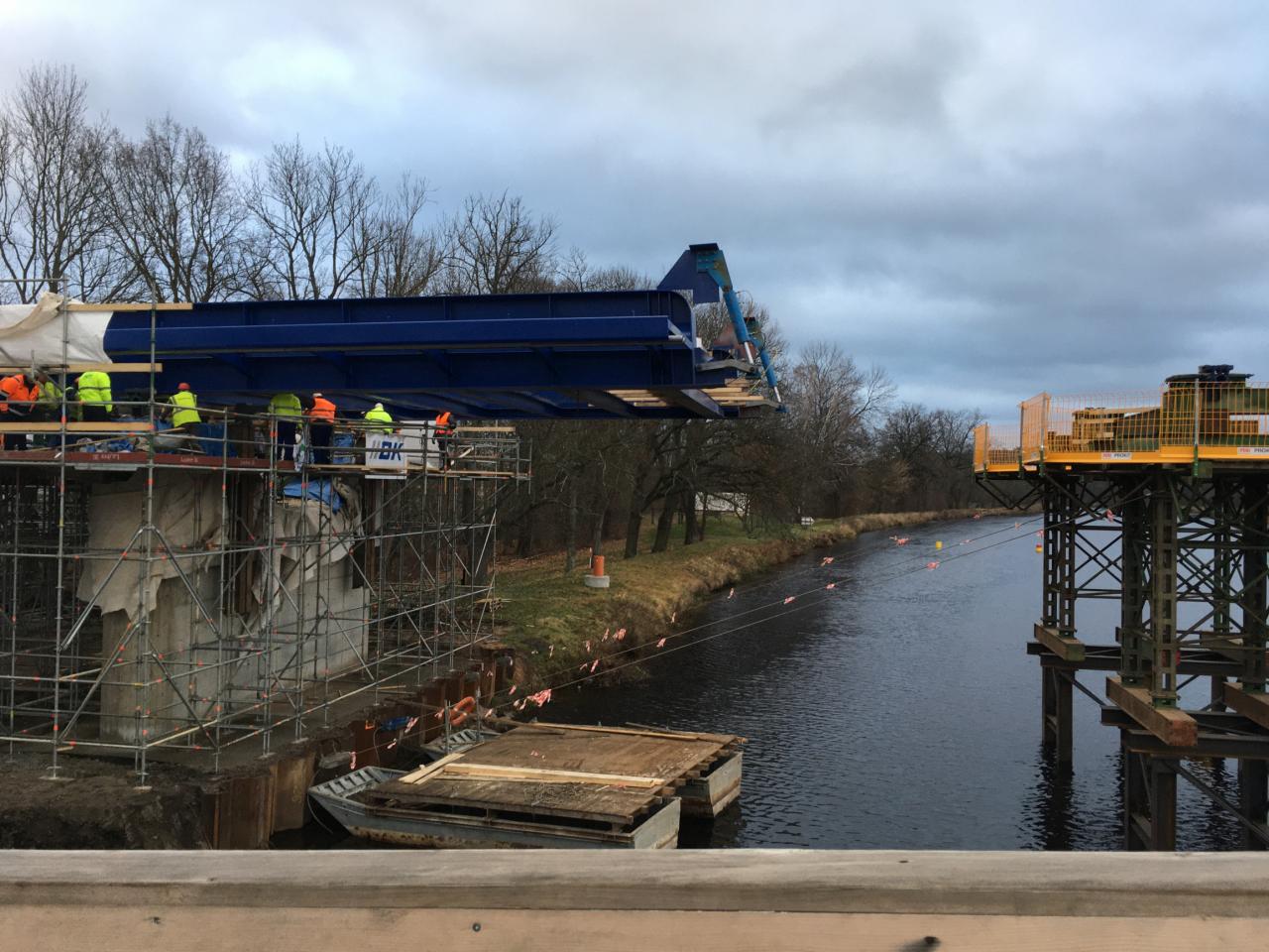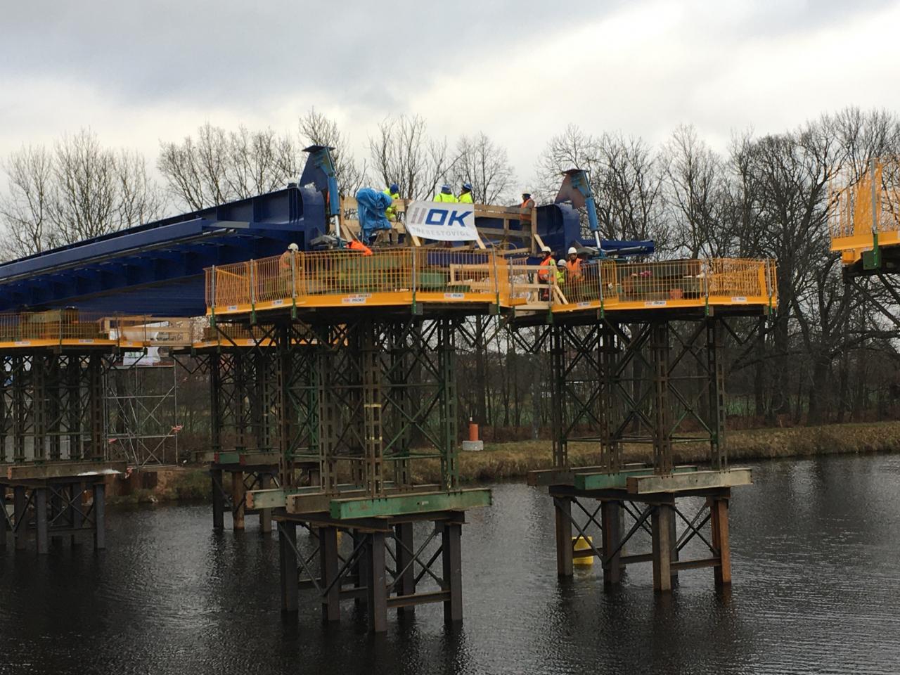 1. výsuv ocelového mostu přes Labe mezi Valy a Mělicemi, 13. 12. 2019