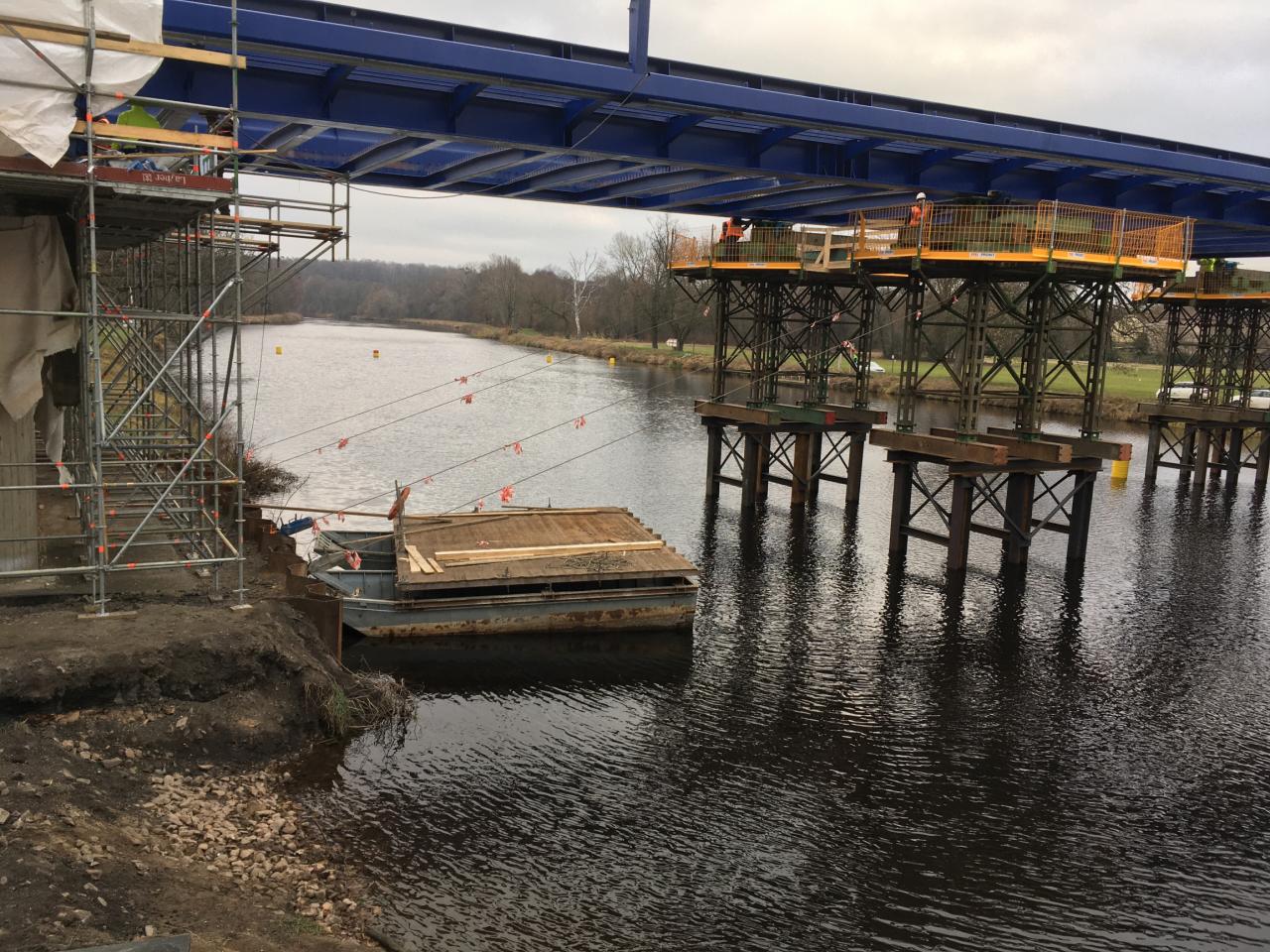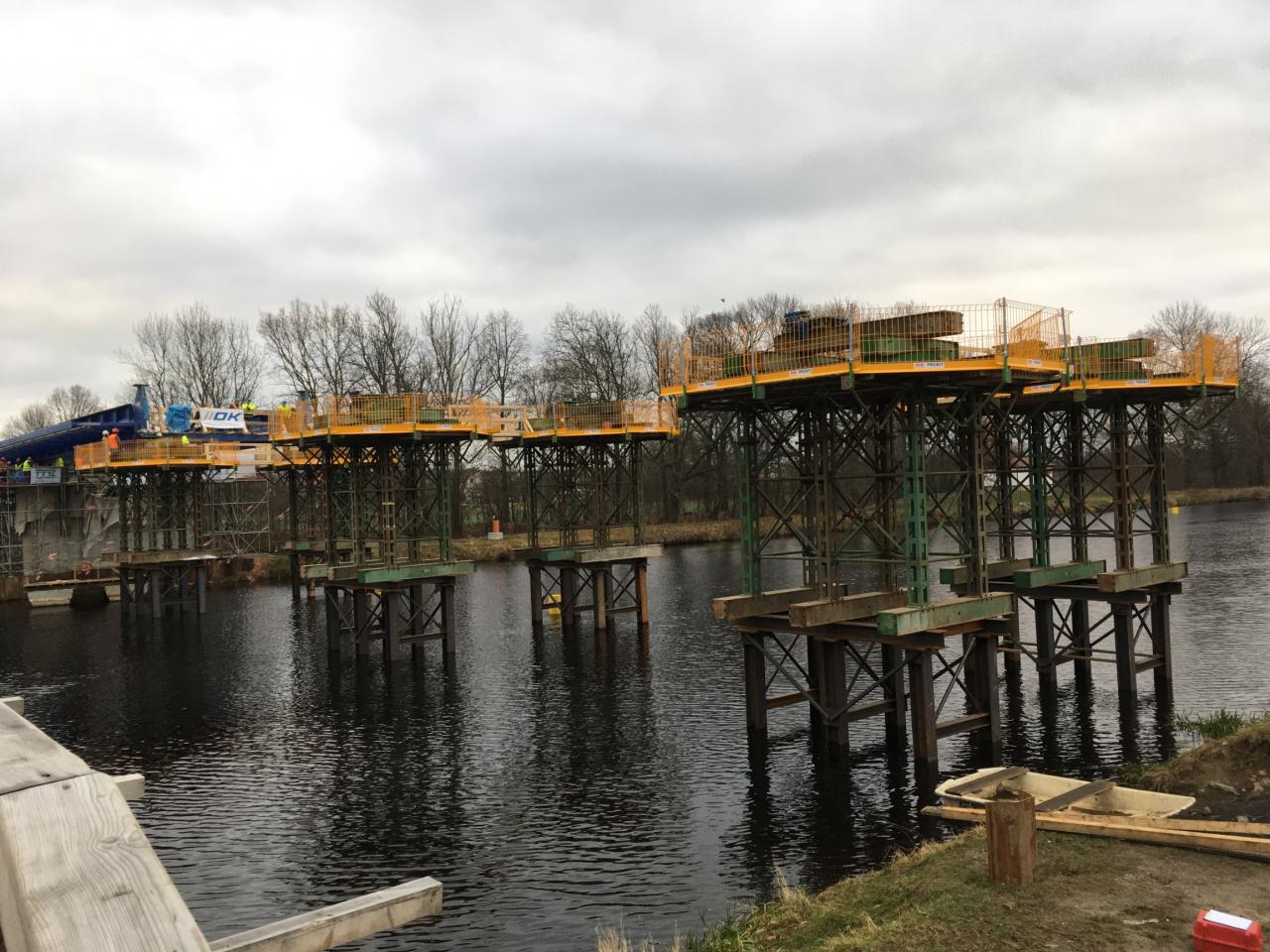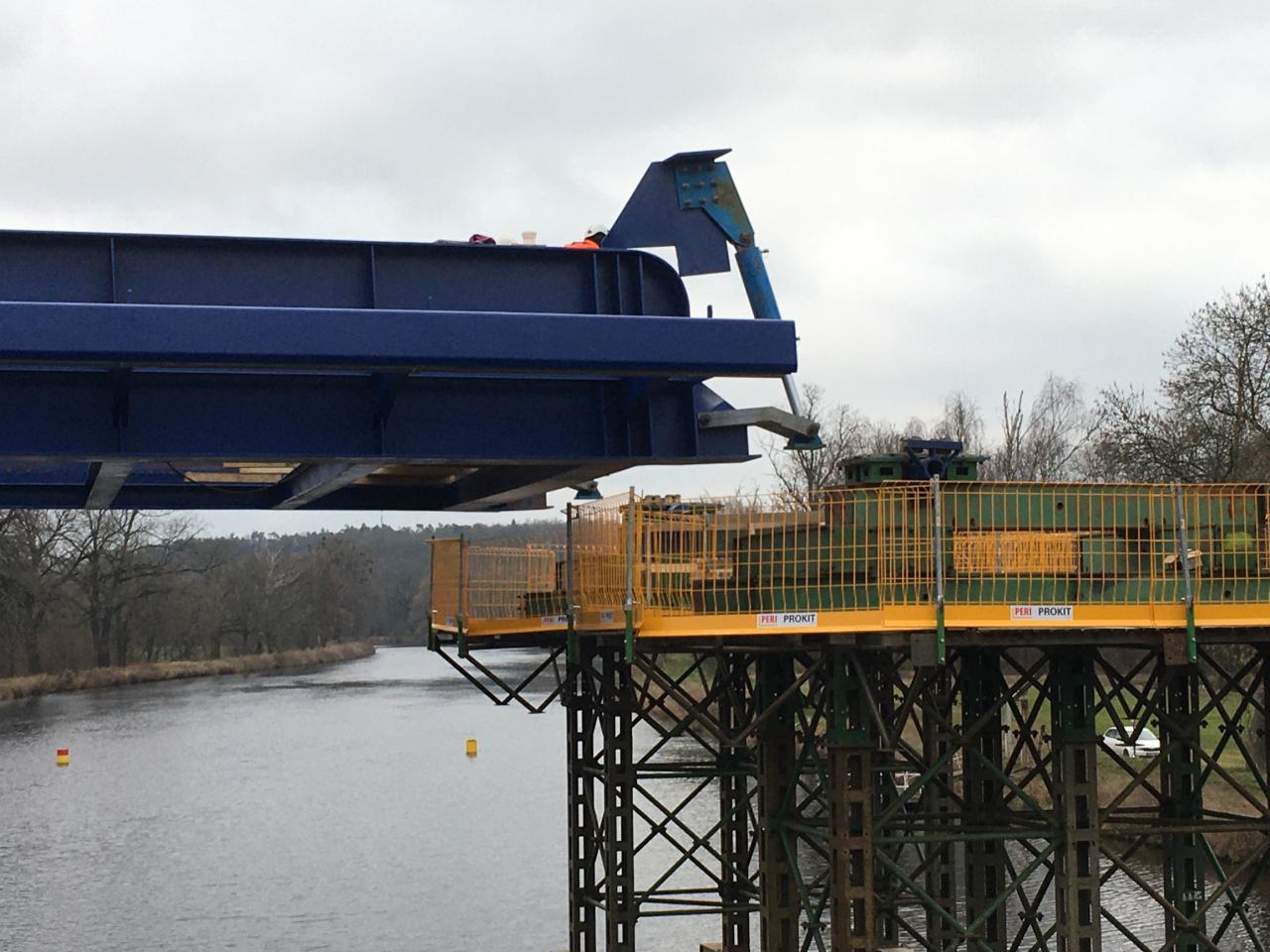 1. výsuv ocelového mostu přes Labe mezi Valy a Mělicemi, 13. 12. 2019